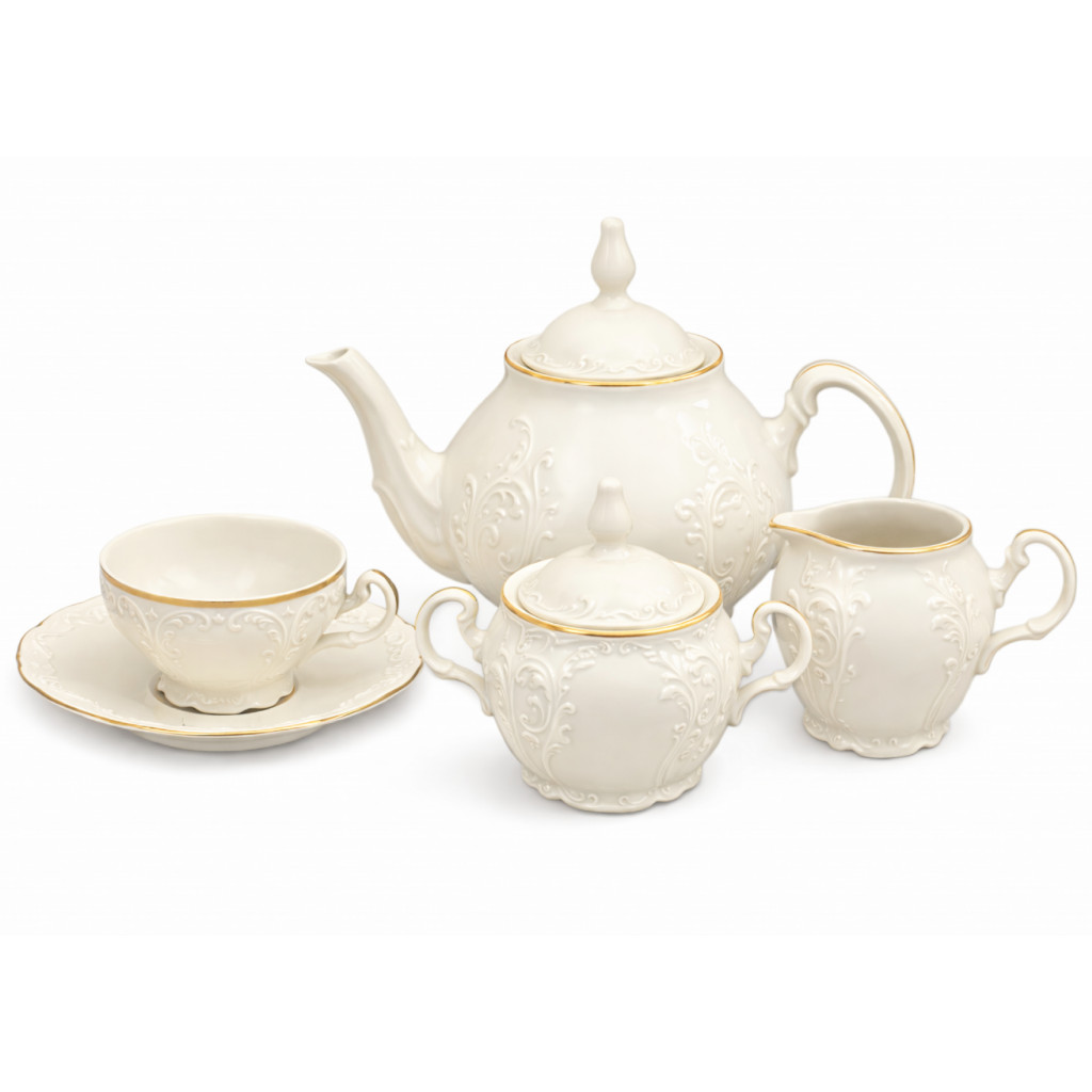 Porcelánová čajová souprava ivory BERNADOTTE zlatá linka.