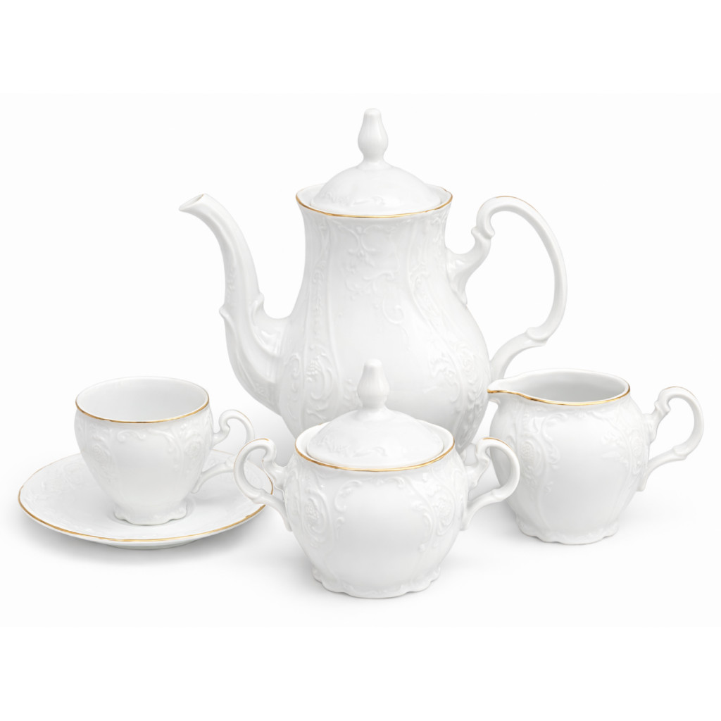 Porcelánová kávová souprava bílá BERNADOTTE zlatá linka.