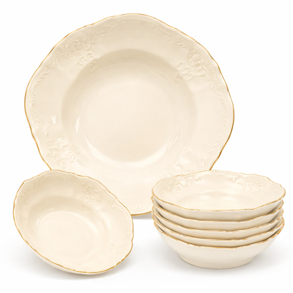 Thun 1794 BERNADOTTE kompotová souprava ivory zlatá linka 7 dílná