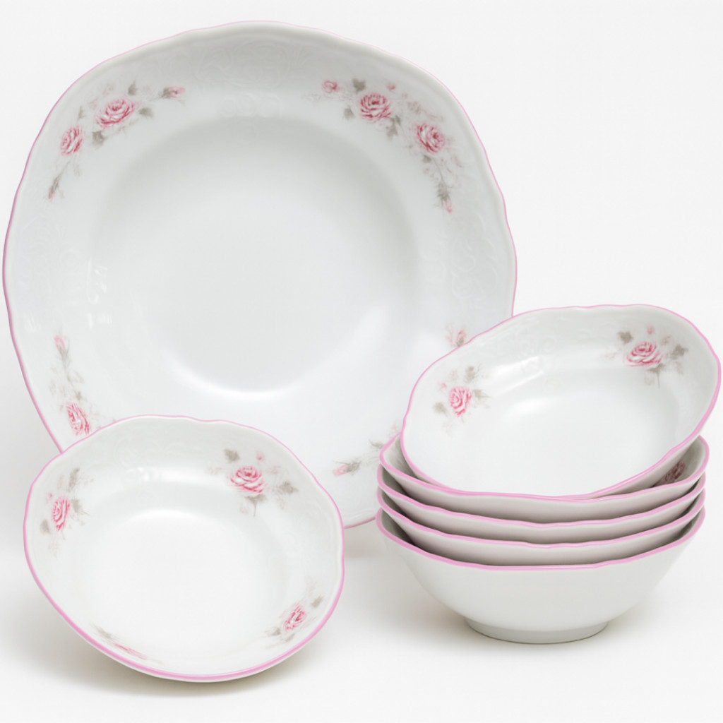 Porcelánová kompotová souprava růžová BERNADOTTE.