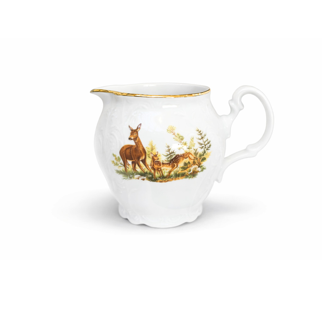 Mlékovku lze snadno kombinovat s dalšími produkty z kolekce Bernadotte Myslivecká, například s kávovou nebo čajovou konvicí, šálky a cukřenkou, a vytvořit tak kompletní porcelánový servis v jednotném designu.