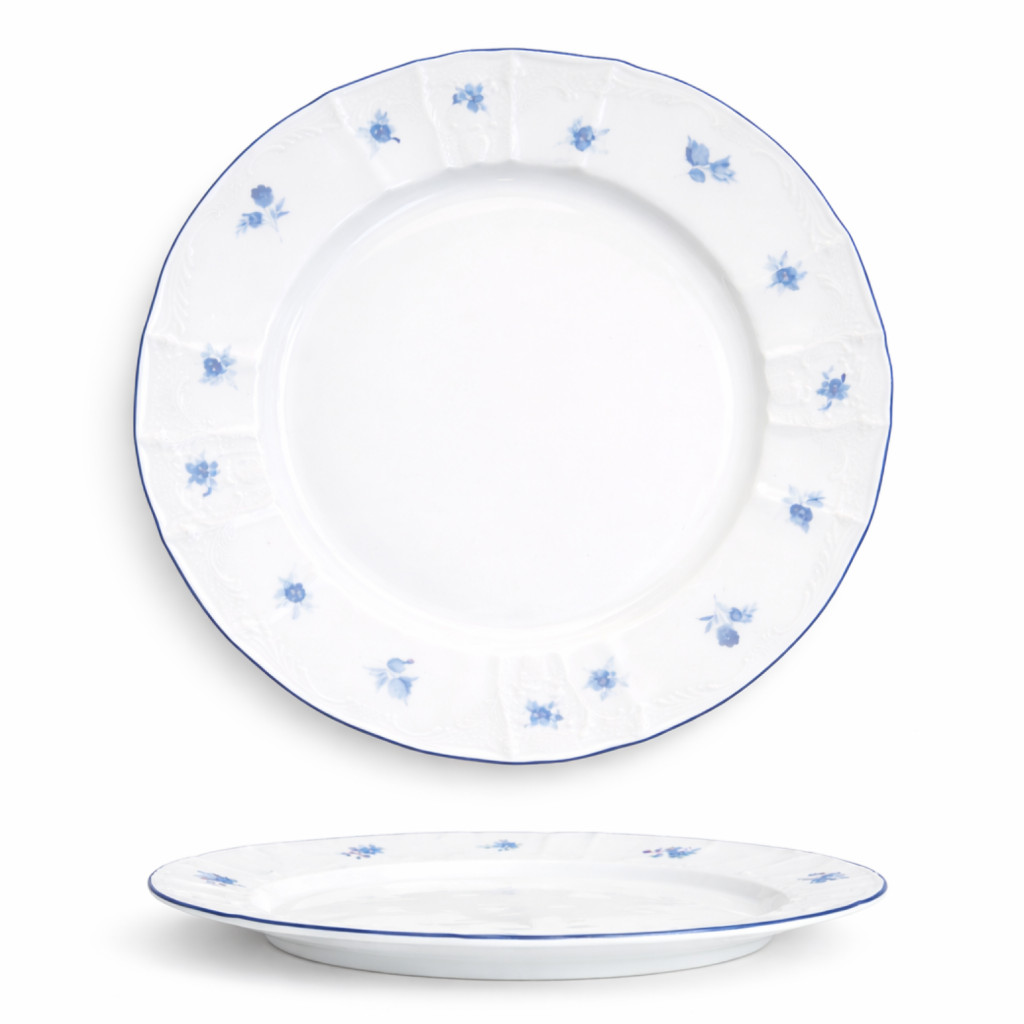 Porcelánový mělký talíř BERNADOTTE modré růžičky.