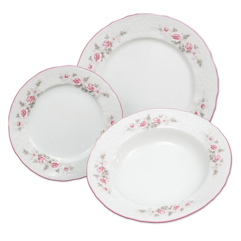Thun 1794 BERNADOTTE talířová souprava růžová 18 dílná