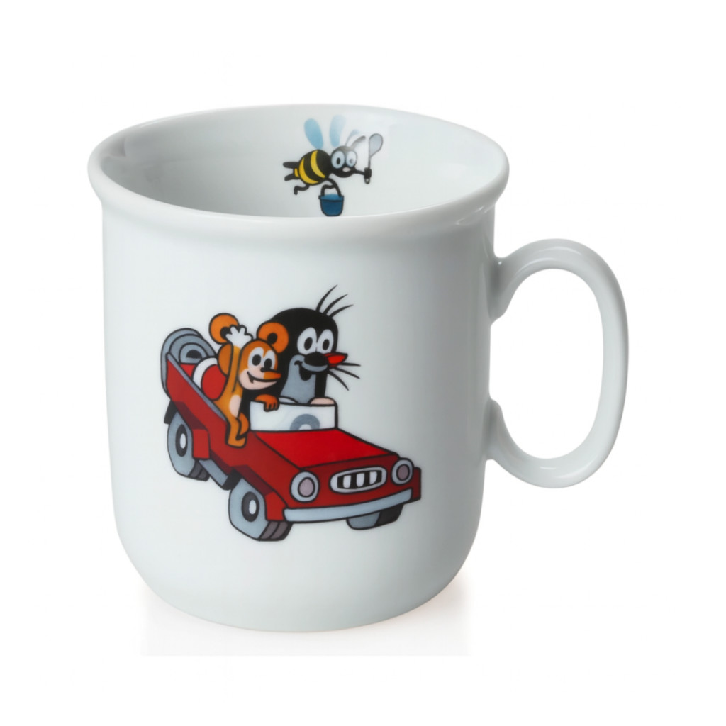 Porcelánový hrnek dětský bílý KRTEČEK a autíčko.
