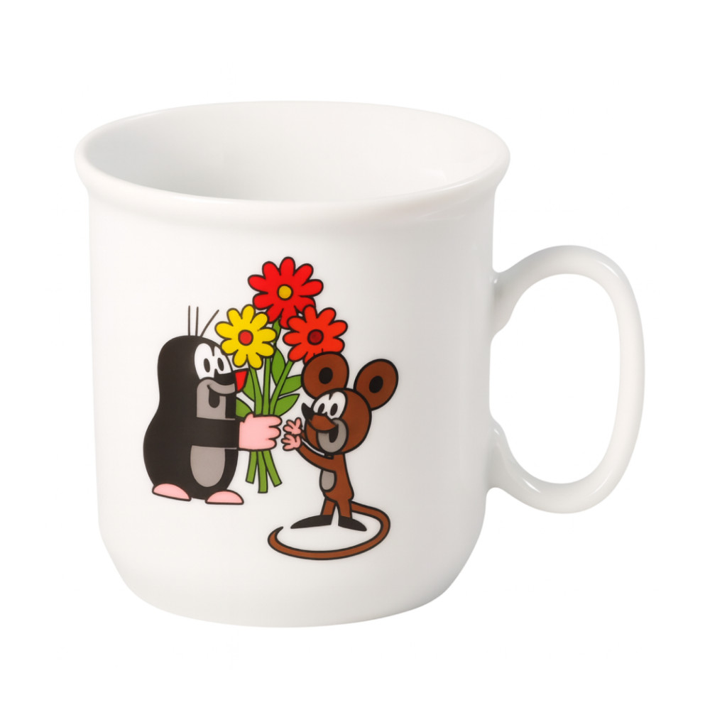 Porcelánový hrnek dětský bílý KRTEČEK a kytice a myška.