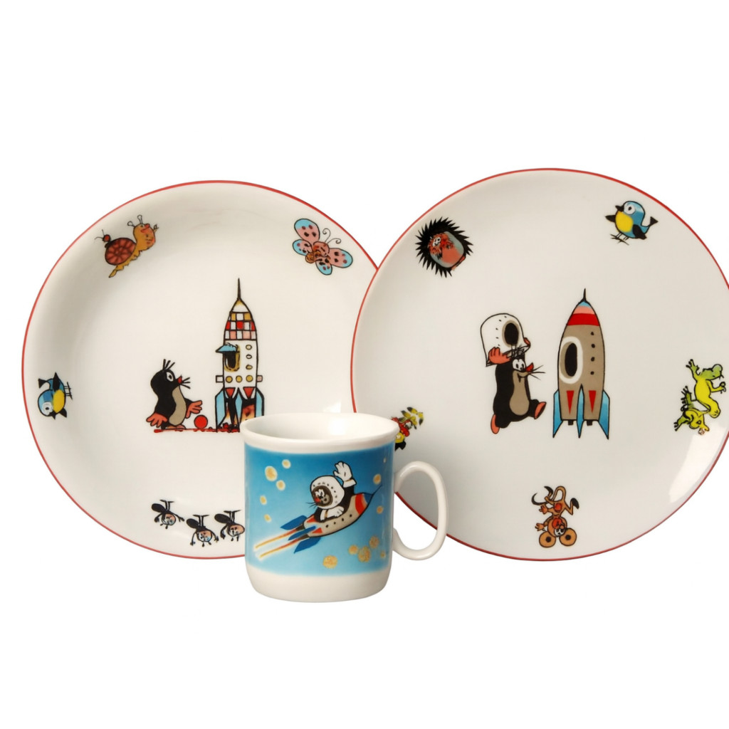 Porcelánová talířová souprava KRTEČEK a raketa.