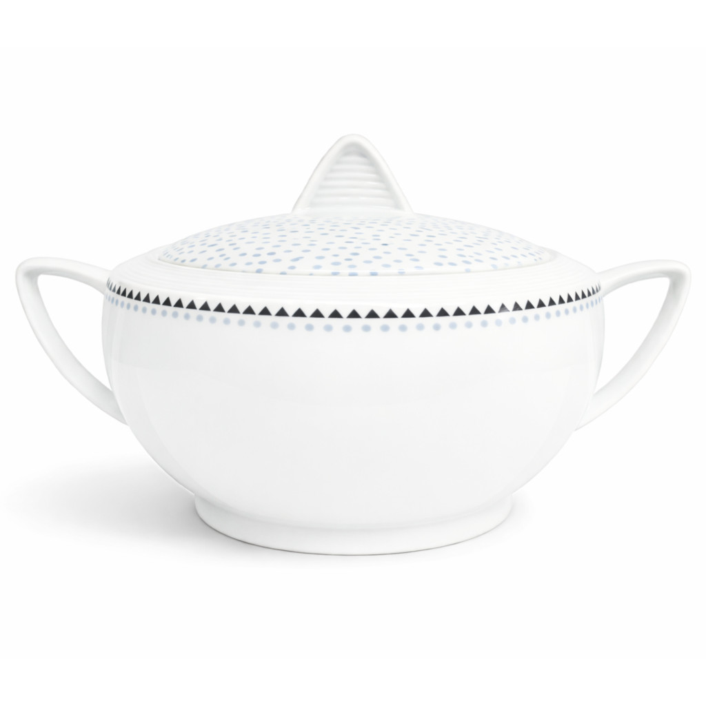 Porcelánová mísa na polévku "terina" LEA modrá. Poklice obsahuje výřez na naběračku.