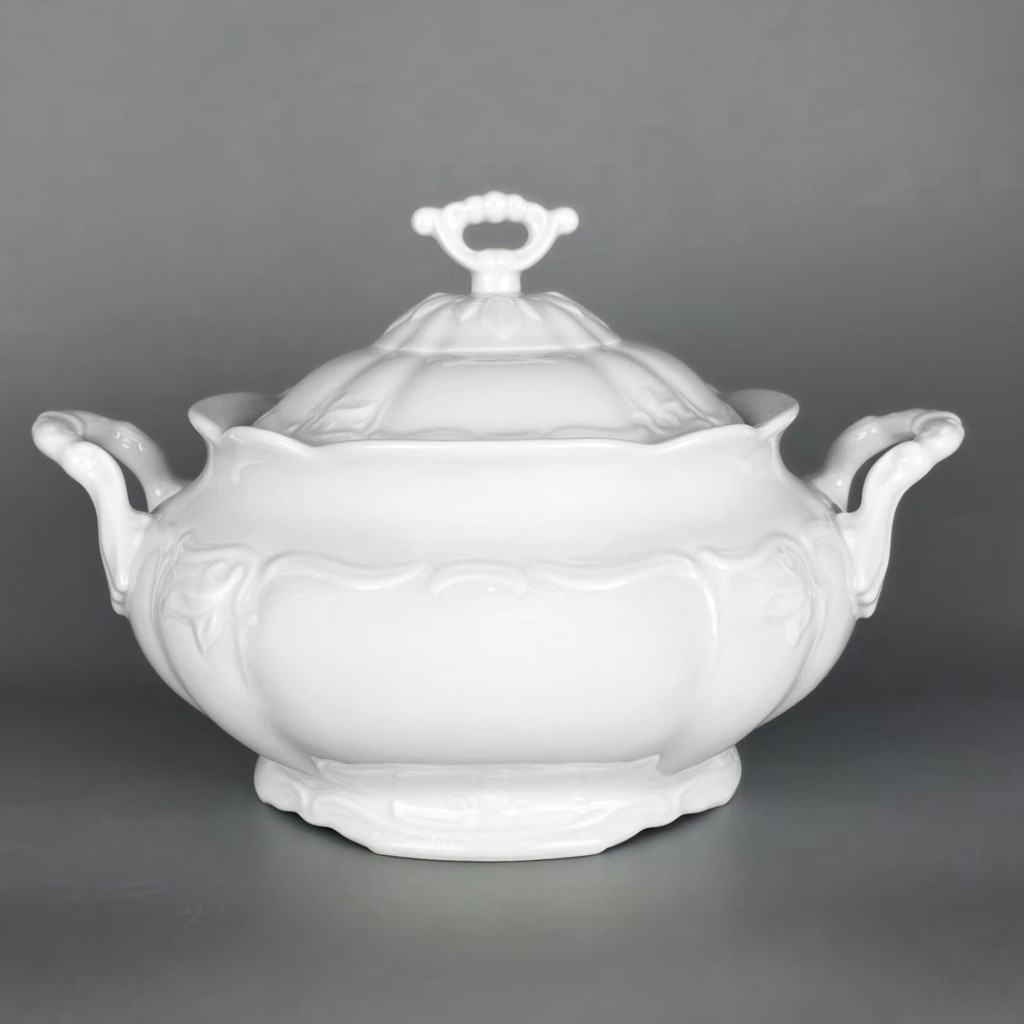 Porcelánová mísa na polévku "terina" bílá MARIE LOUISE. Poklice obsahuje výřez na naběračku.