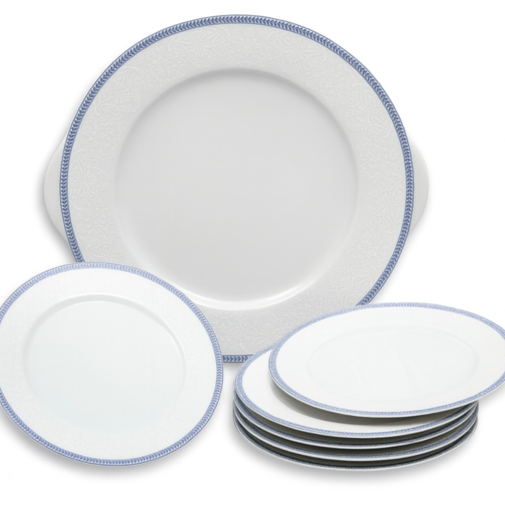 Porcelánová koláčová souprava modrá krajka OPAL.
