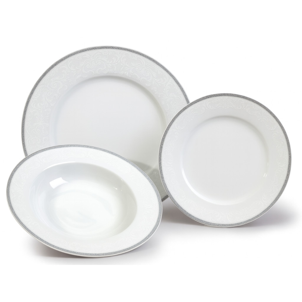 Porcelánová talířová souprava šedivá krajka OPAL.