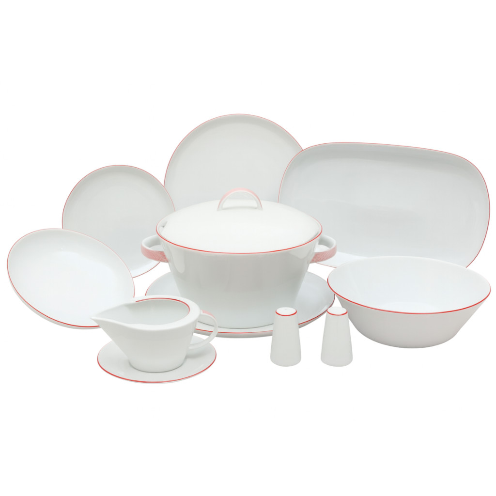 Porcelánová jídelní souprava červená linka TOM COUP.