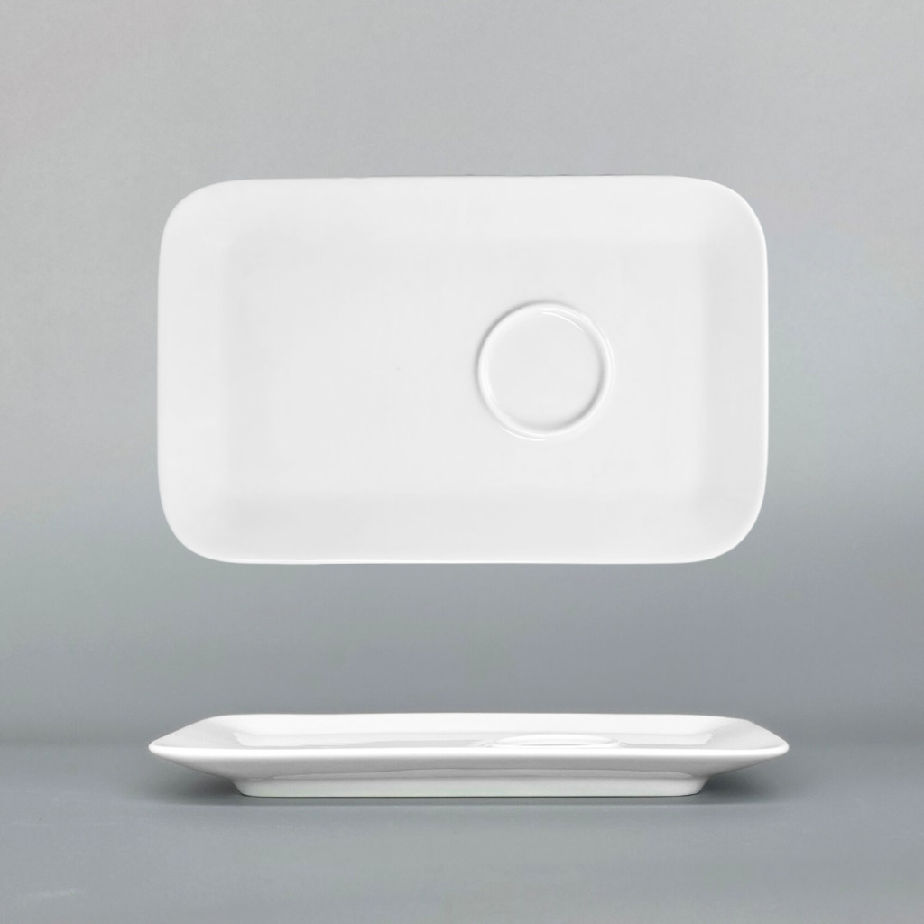 Porcelánový podšálek bílý TONO. Vhodný na šálky espresso, lungo, cappuccino a hrnek na čaj z kolekce TONO.