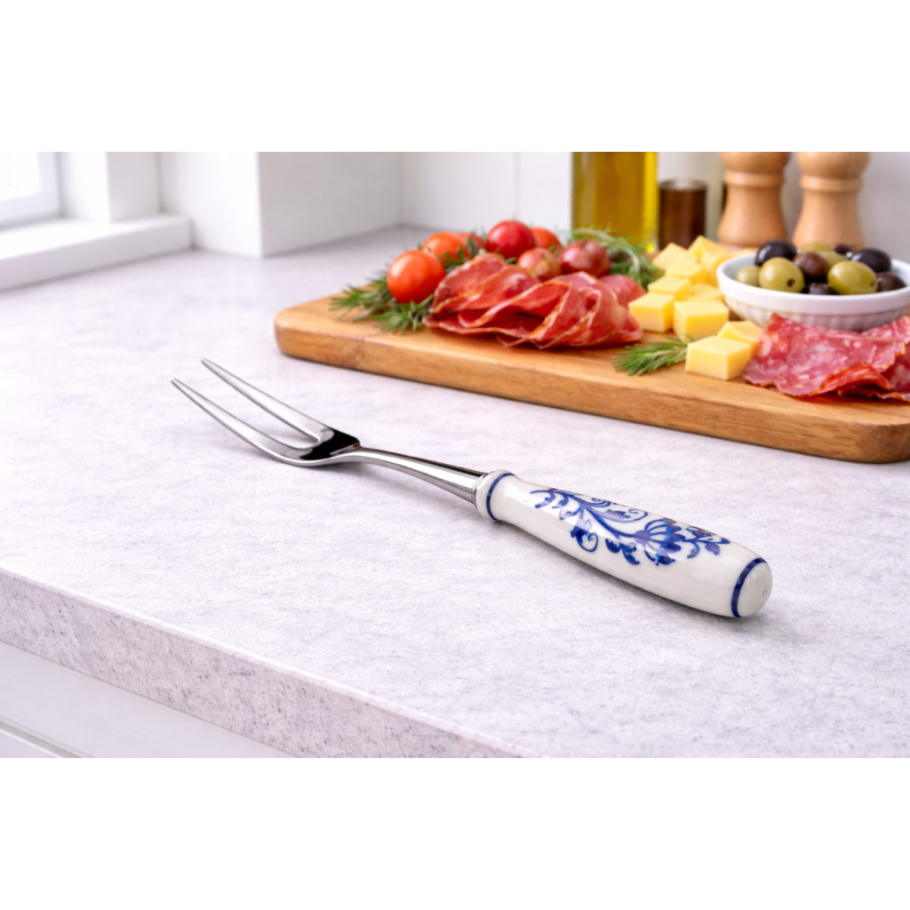 Vidlička na nářez CIBULÁK zaujme porcelánovou rukojetí s originálním dekorem a kvalitním provedením z nerezové oceli 18/10, mechanicky leštěné do vysokého lesku.