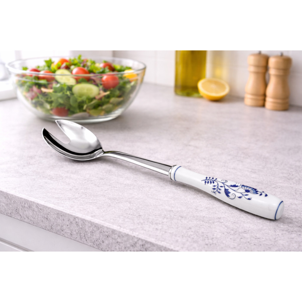 Vidlička na salát CIBULÁK vyniká porcelánovou rukojetí s originálním dekorem a kvalitním zpracováním z nerezové oceli 18/10, mechanicky leštěné do vysokého lesku. Je ideální pro elegantní servírování salátů, přičemž pro zachování krásy dekoru doporučujeme ruční mytí.