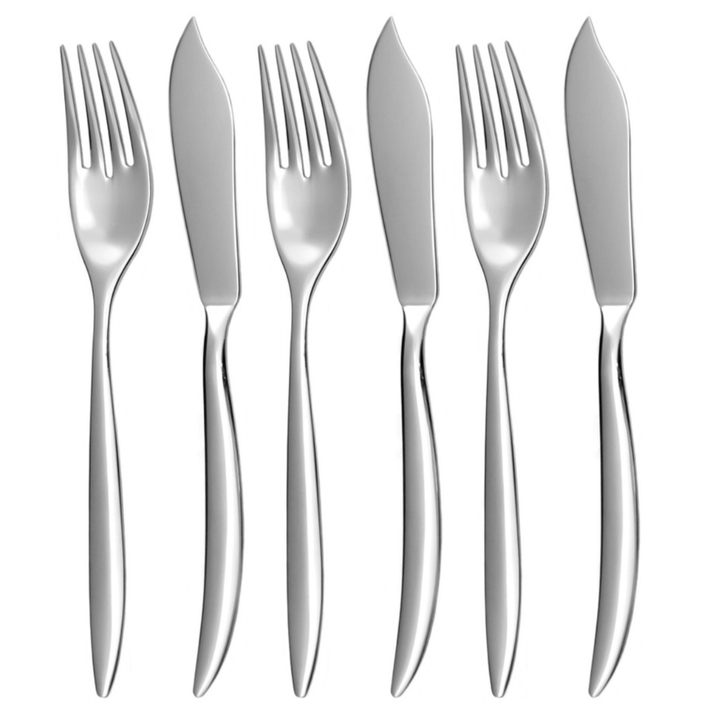 Jídelní příbor ELEGANCE – rybí sada z kvalitní nerezové oceli je mechanicky leštěna do vysokého lesku a navržena speciálně pro pohodlné servírování rybích pokrmů. Šestidílná sada pro 3 osoby je vhodná do myčky a díky elegantnímu dárkovému balení je ideální i jako stylový dárek.